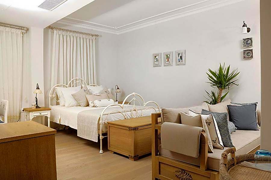 Large suite featuring marina views and a separate living room with a seating area.